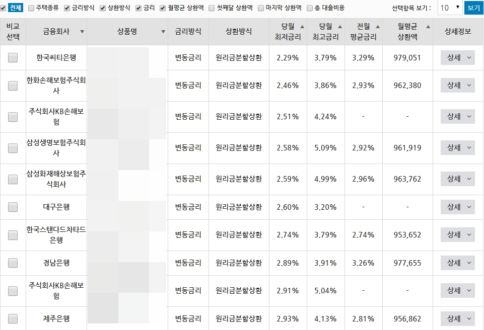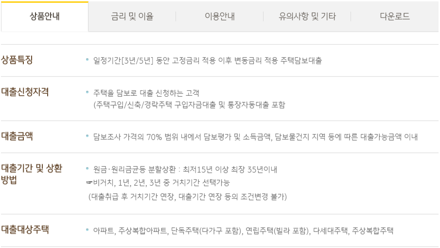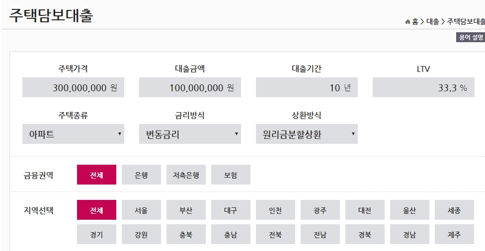 해야합니다.금융감독원 홈페이지에서 주택담보대출에 대하여 은행별로 비교를 할수 있습니다.