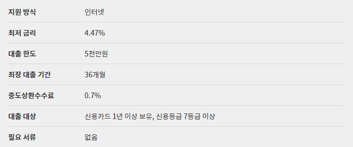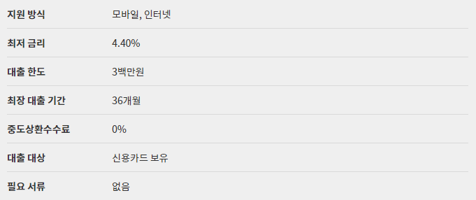 현재 시중에 나와있는 무직자 신용대출을 비교하여 금리가 가장 낮은 상품을 선정하였습니다. 이는 연 소득에 상관 없이 신용카드 보유 시 지원 가능한 상품이기 때문에 주부 및 대학생 분께서는 본인 상황에 적합한 무직자 신용대출을 아래에서 확인해 보시길 바랍니다