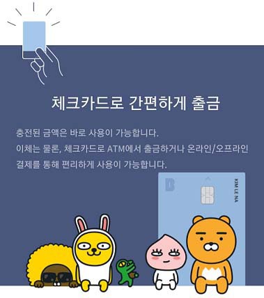 이 상품의 장점이라고 한다라면 체크카드를 발급하면 나의 카뱅 계좌에서 바로 출금할 수 있기 때문에 반드시 신청을 해주시는것이 좋겠습니다 물론 출금 수수료는 무료입니다