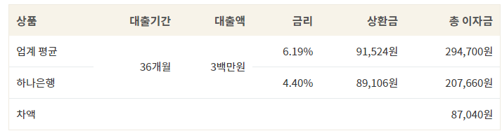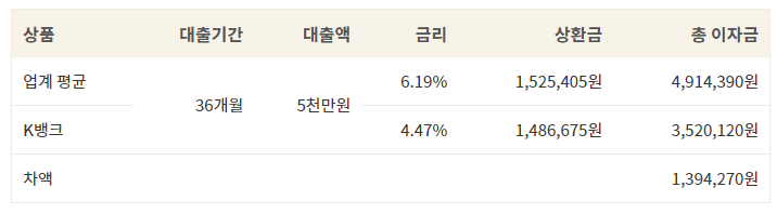 K뱅크 슬림K 신용대출 상환 총 이자금
