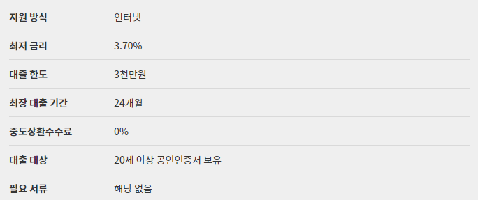 추천 대상: 3천만원 이내의 대출을 원하시는 분