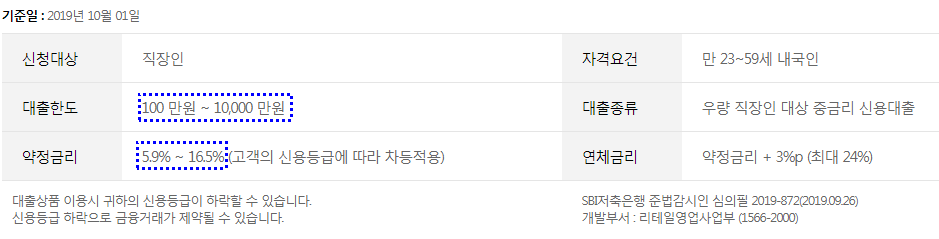 대출금리: 5.9%~19.9% (신용도별로 차등적용)