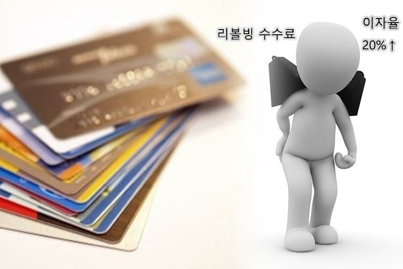 돈을 구할 수 없어서 리볼빙을 이용하는 것인데 돈이 더욱 부족해지는 상황이 오게 될 수 있는 것이죠 이런 악순환에서 탈출하기 위해서는 차라리 더 값싼 금리로 이용할 수 있는 상품을 이용하는것이 더 빠를 수 있습니다