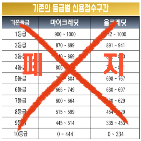 여태까지 이용해왔던 개인 신용등급제가 폐지되고 2021년 1월 1일 부터 신용점수제가 실시됩니다