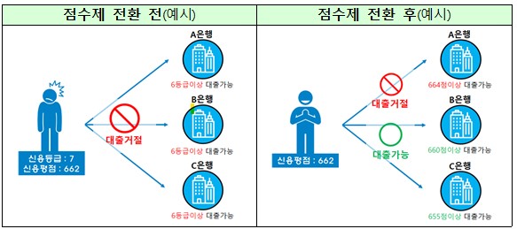 등급->점수로 바뀌게 되면서 신용점수가 조금 오를 수 있는데요 특히 신용카드나 대출 등 신용 거래 이력이 없어